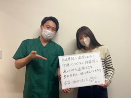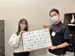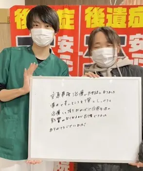 初めての追突事故に遭い、どうすれば良いか分からず、駆け込んでから約半年。くび、かた、腰の痛みも良くなり、スタッフの皆さんとも仲良くなれてとても楽しい治療期間を送りました!本当にありがとうございました♡